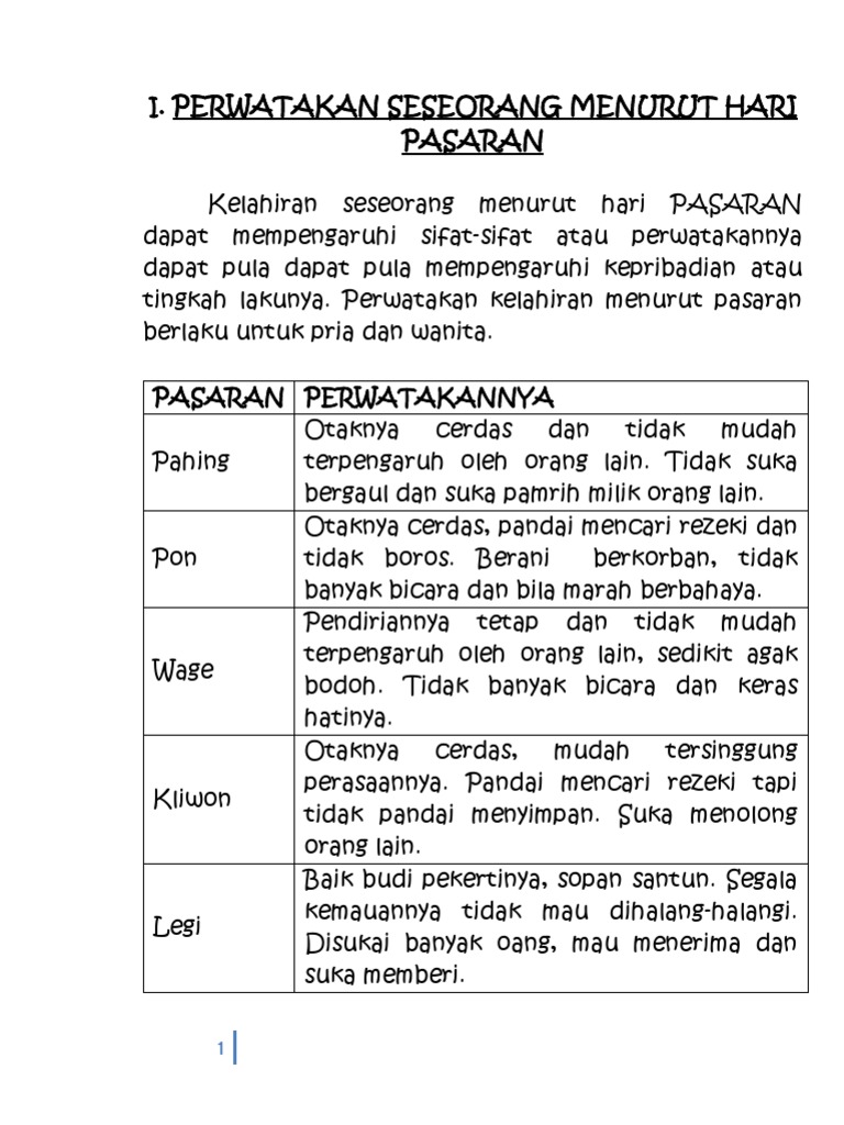 Kebanyakan orang jawa dahulu mendasarkan atas hari yang berjumlah 7 senin-minggu dan pasaran yang jumlahnya ada 5 tiap hari tentu ada rangkapannya pasaran jelasnya. Primbon Wanita Watak Sesuai Hari Kelahiran primbon wanita haidgaris tanganBulan lahirfirasat dilihat dari Primbon hari dan pasaran lahirRamalan tanggal. Maka firasatnya adalah akan mendapat sebuah ketenangan dan ketentraman hati serta pikiran.
